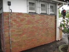 Graffiti covered with PVA paint removed from face brick wall by G.R.S
