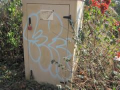 Graffiti Tags removed from cream plastic power box by G.R.S