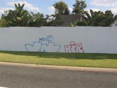 Graffiti Tags removed from painted wall by G.R.S