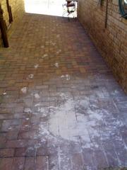 Paint spill cleaned from brick pavers by G.R.S