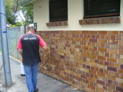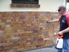 Graffiti protection shield being applied to face brick by G.R.S