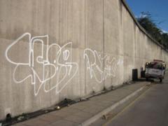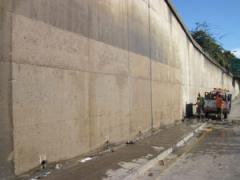 Graffiti removal and high pressure washing of concrete embankment wall by G.R.S