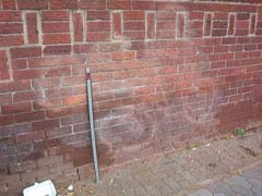 Trying to paint out Graffiti tags on face brick is often not an effective method of removing Graffiti. Very often the colour will not match the face brick and the Graffiti shadow will most likely resurface. In instances where face brick has been painted in order to cover Graffiti, the problem is worsened and the cost to restore the wall to it's original Graffiti and paint-free condition is substantial. (Image C) |